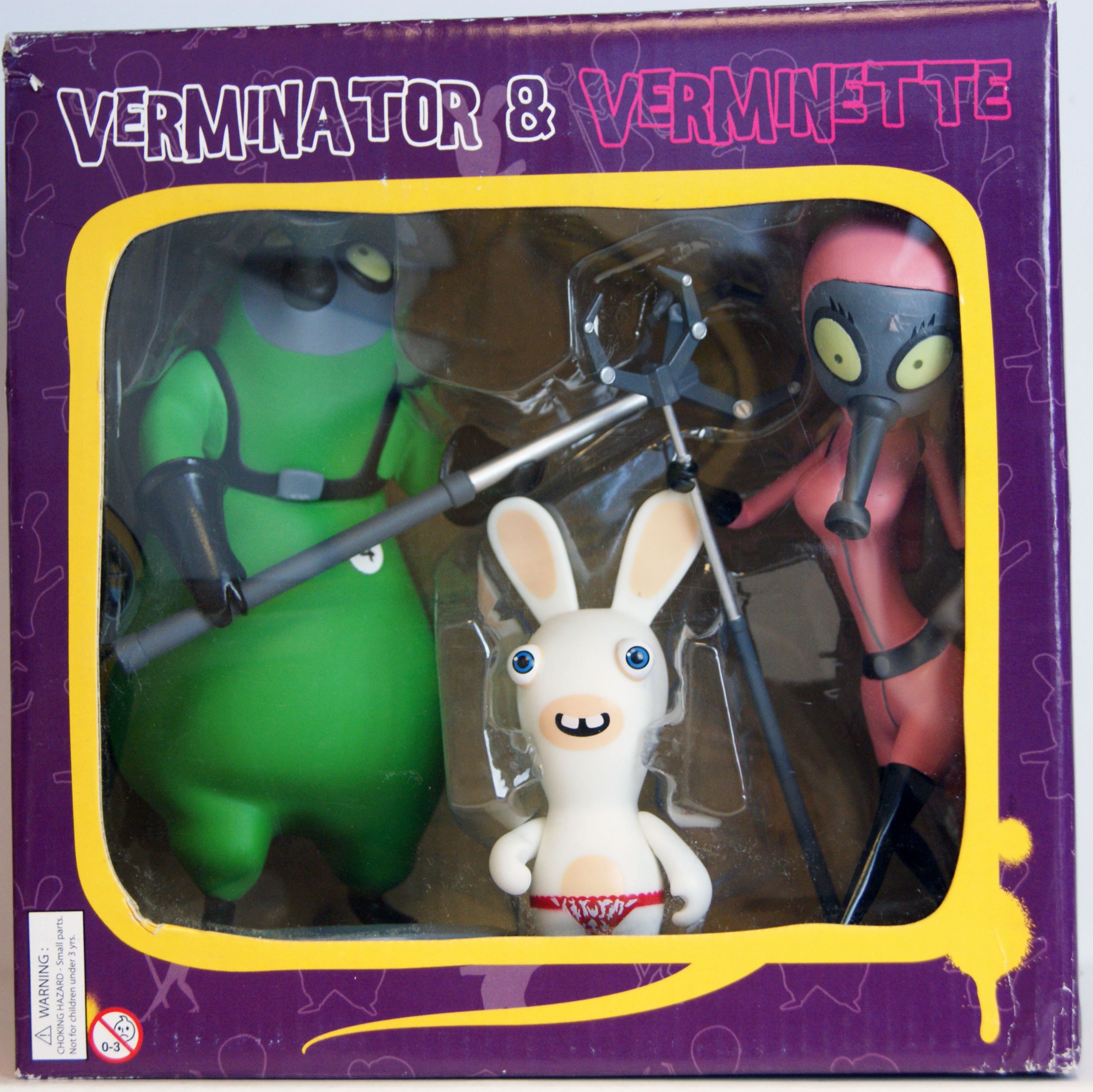 Keep the world safe (for shopping). Flying, charging, frying, spinning, jousting but are they go. Verminators are people who have volunteered to kill the rabbids for the good of the city. They are humans who are dressed in multicolored rubber suits and sometimes wear gas masks.